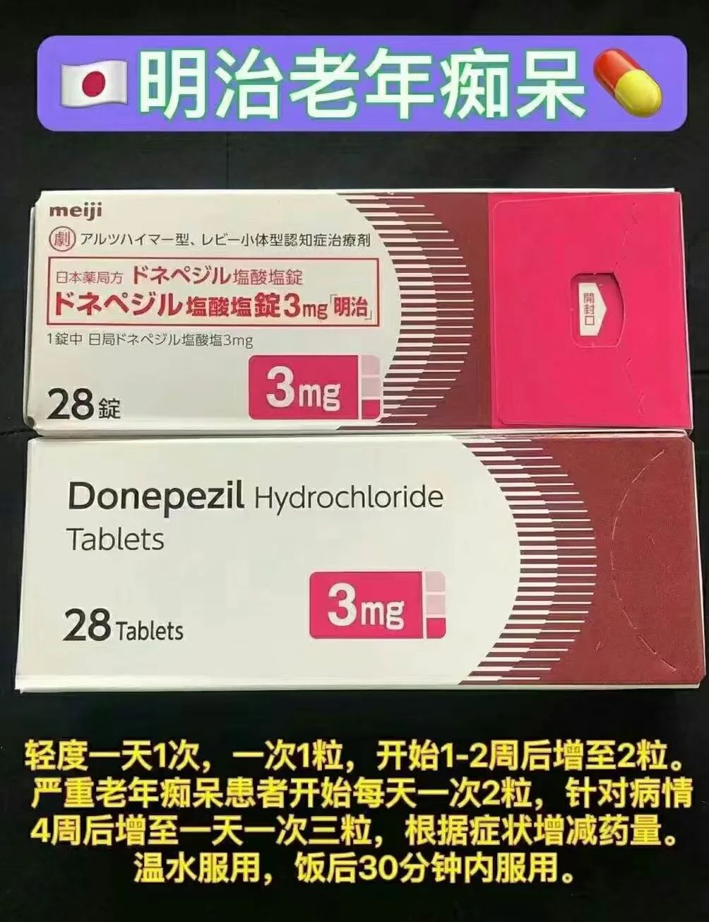 明治老年痴呆治疗药3mg(ドネペジル塩酸塩錠3mg「明治」)——盐酸多奈哌齐(Donepezil Hydrochloride)